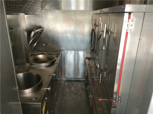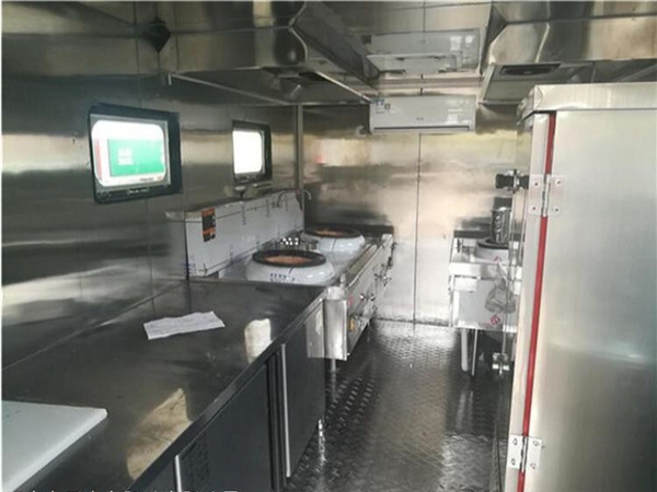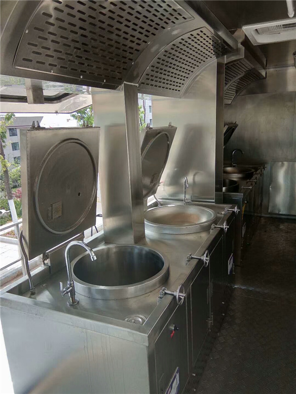 廂體外蒙材料可以采用玻璃鋼板或者彩鋼板,內(nèi)飾材料采用不銹鋼板或者玻璃鋼板或者彩鋼板,廂體兩側(cè)采用上翻結(jié)構(gòu)??梢栽O(shè)置單獨(dú)的隔離艙用于放置燃?xì)庠詈蛢ξ锕瘛\噹麅?nèi)部可以根據(jù)實(shí)際使用情況配備:廚房專用燃?xì)庠?,水池,冰箱,電磁爐,開水器,水箱等,也可以根據(jù)客戶要求配置,采用外接電源供電。 流動餐飲車采用二類汽車底盤改裝,車廂經(jīng)過特殊材料制作而成的專用汽車