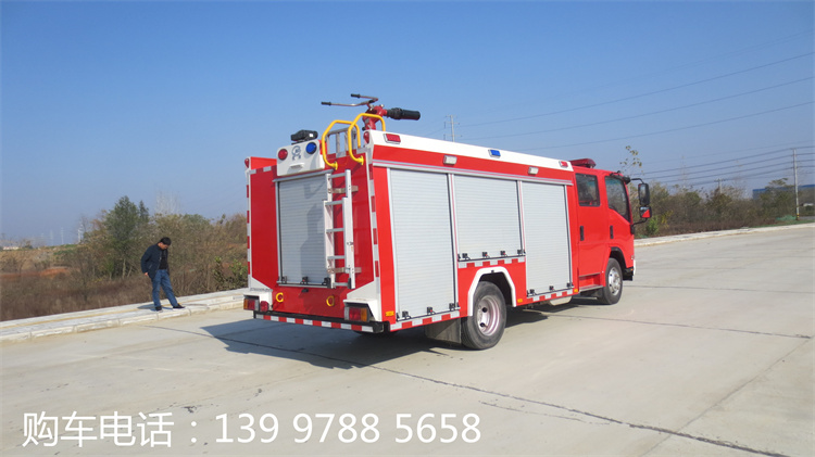 江特牌慶鈴泡沫消防車罐體容積3.8立方米,整車型號為:JDF5100GXFPM40/Q6