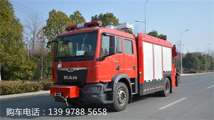 江特牌JDF5120TXFJY90/6搶險(xiǎn)救援消防車是一款進(jìn)口消防車。選用德國曼恩商用TGM18.290二類底盤。配備5噸吊機(jī),4*1000W升降照明系統(tǒng)和220V發(fā)電機(jī)。