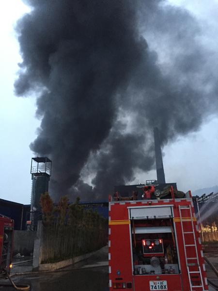 接到報(bào)警后,宜賓消防支隊(duì)下屬7個(gè)中隊(duì)、19輛各類消防車、100余名消防官兵迅速趕到現(xiàn)場(chǎng)進(jìn)行處置,同時(shí),支隊(duì)?wèi)?zhàn)勤保障大隊(duì)緊急調(diào)集4噸泡沫滅火藥劑趕赴現(xiàn)場(chǎng)。消防官兵到達(dá)現(xiàn)場(chǎng)后,經(jīng)偵查沒(méi)有發(fā)現(xiàn)無(wú)人員被困。只見(jiàn)現(xiàn)場(chǎng)濃煙滾滾,一棟四層建筑和旁邊兩座鋼結(jié)構(gòu)廠房起火,過(guò)火面積較大,廠房石棉瓦頂棚和內(nèi)部可燃物正在劇烈燃燒,燃燒物質(zhì)有油、P2O4有機(jī)溶劑和裝硫酸鋅的膠桶等,現(xiàn)場(chǎng)情況十分危急。