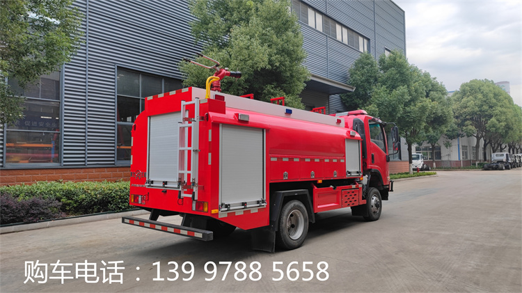 慶鈴700P水罐消防車,水罐容積4.2立方米,四驅(qū)。 主要專用裝置有消防泵、消防車炮。