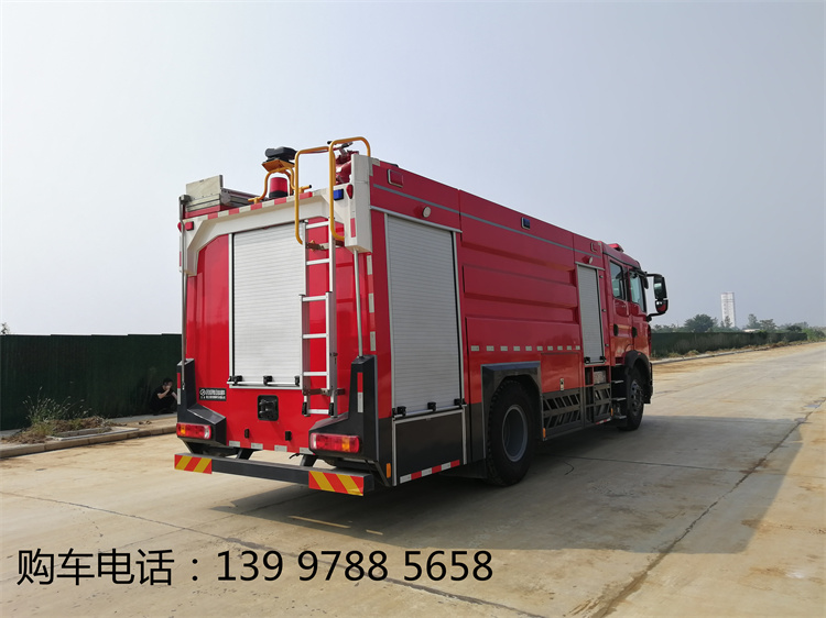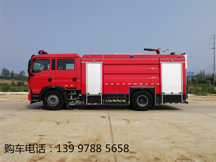 豪沃7噸泡沫消防車整車型號:JDF5200GXFPM70/Z6,水罐容積6.1立方米,泡沫容積1.05立方米。軸距4600mm